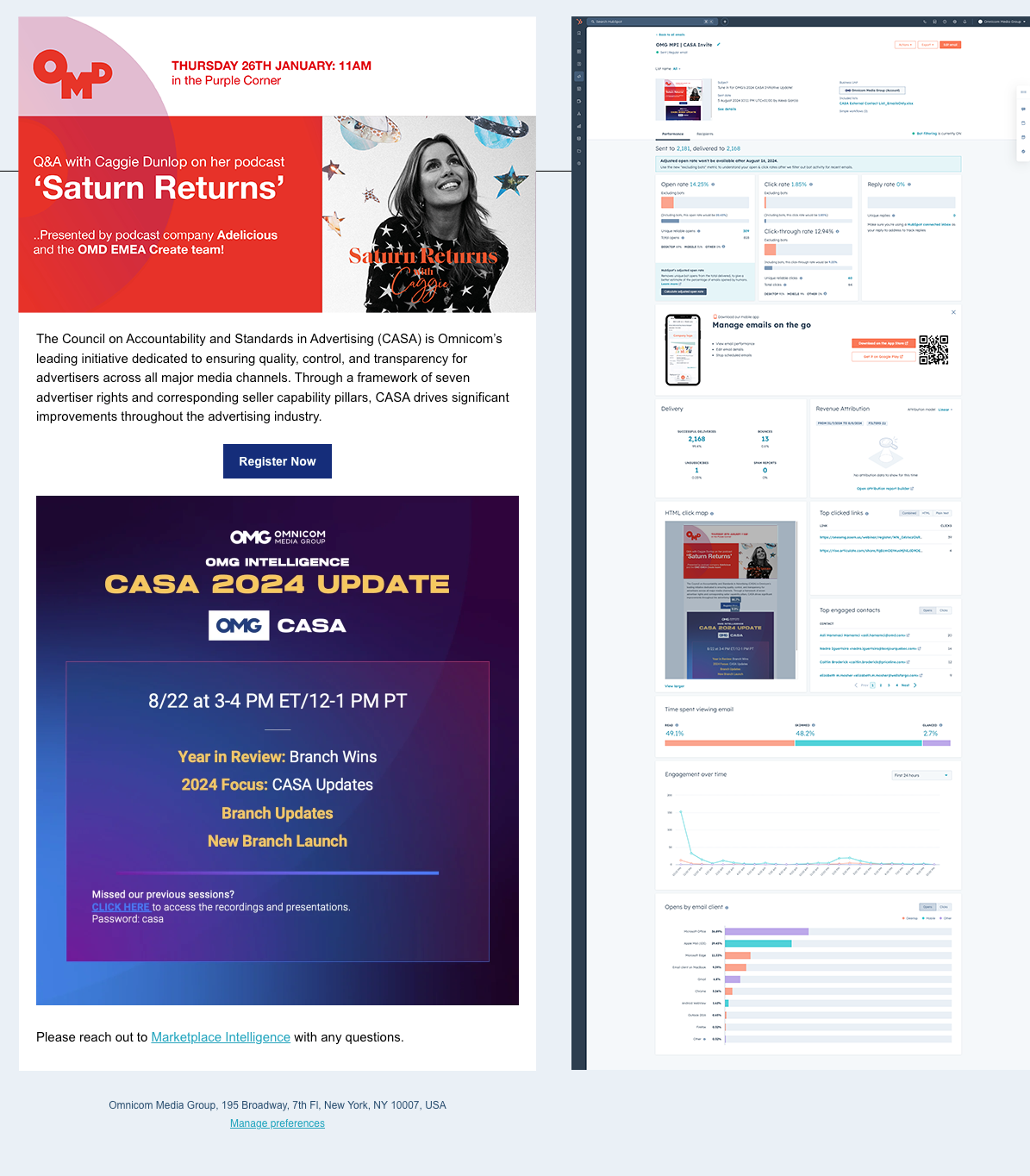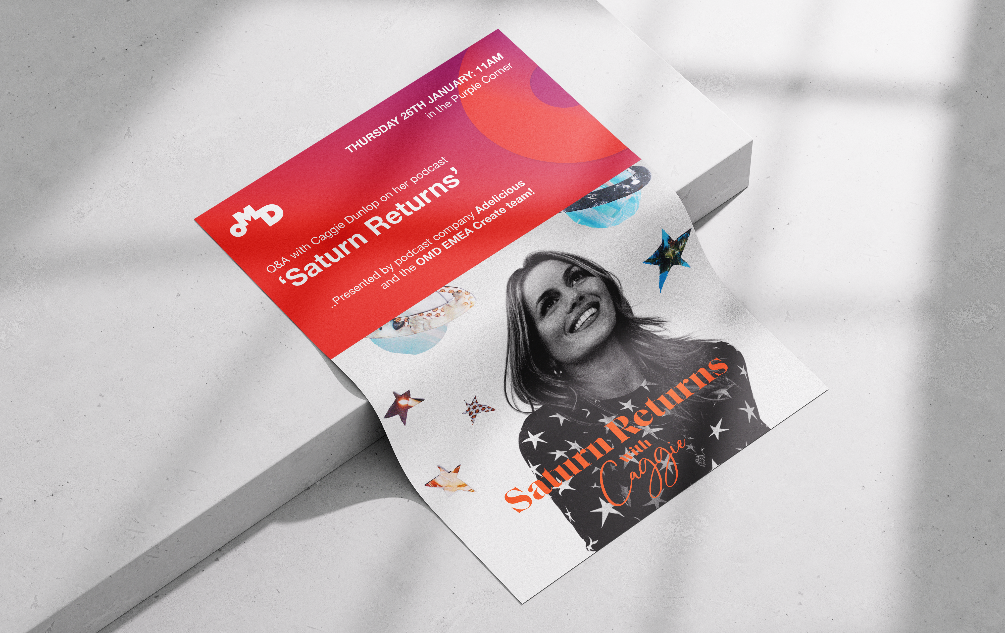 OMD internal event, Q&A with Caggie Dunlop on her podcast ‘Saturn Returns’, Hubspot newsletter mockup