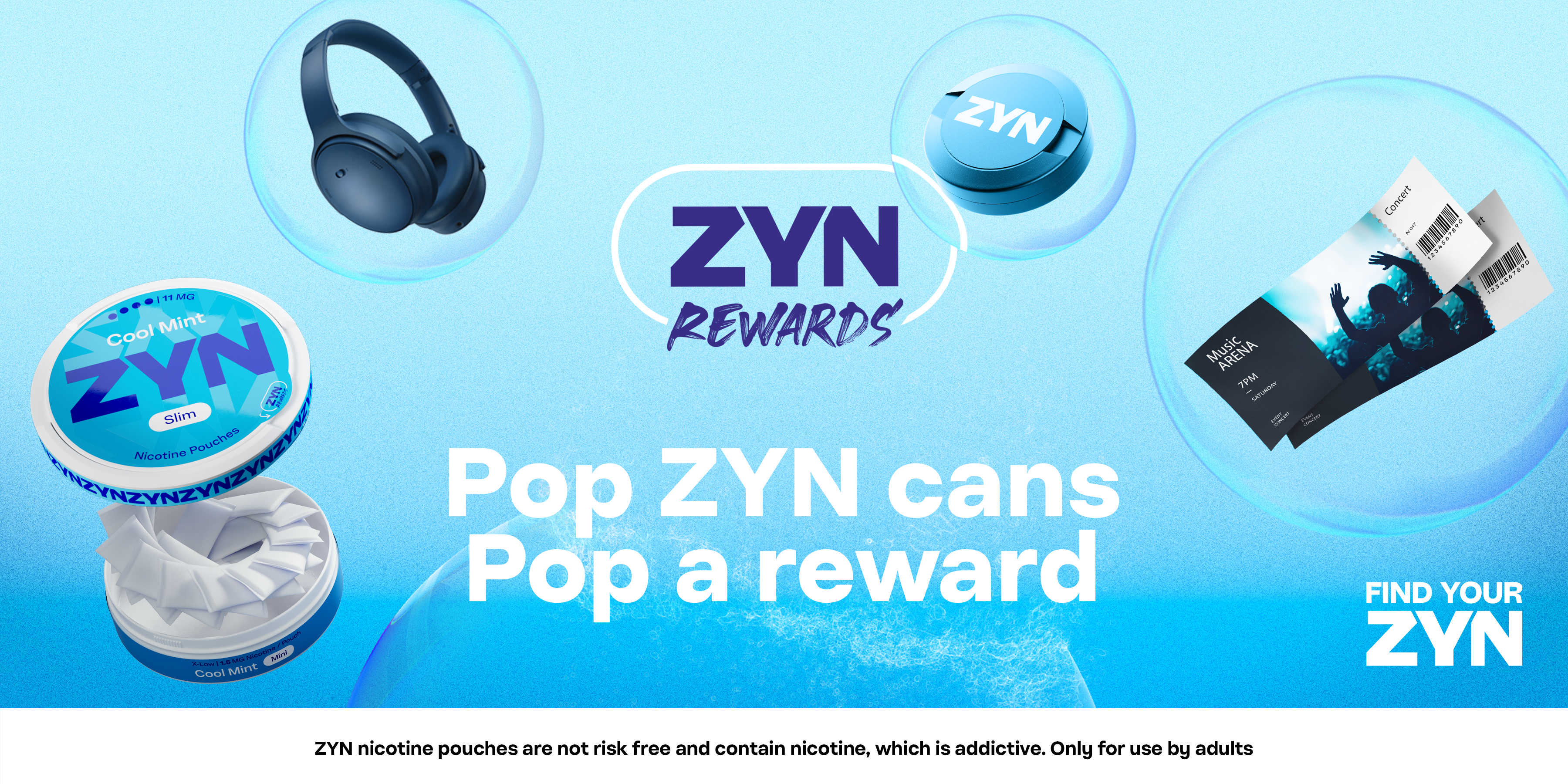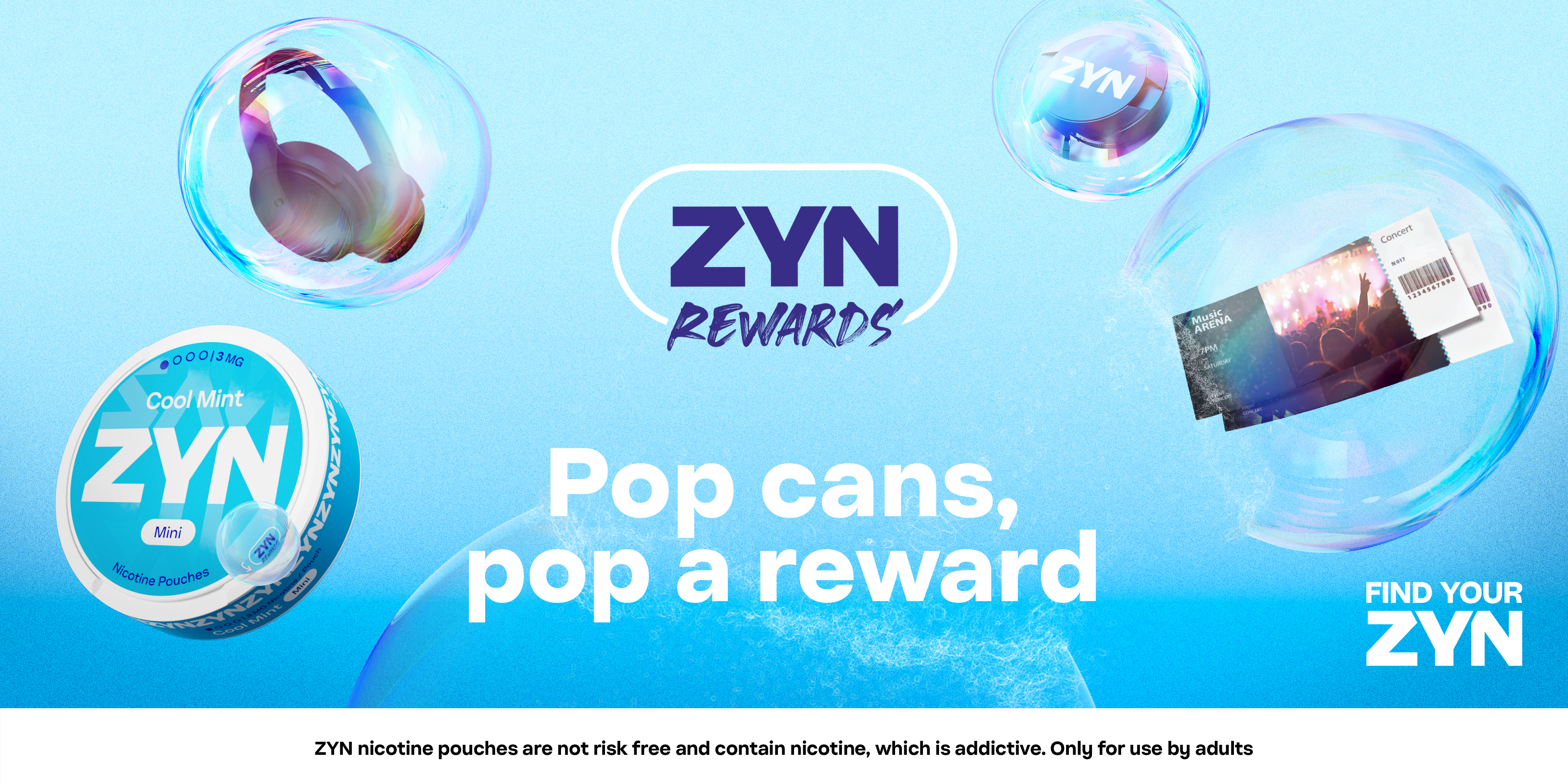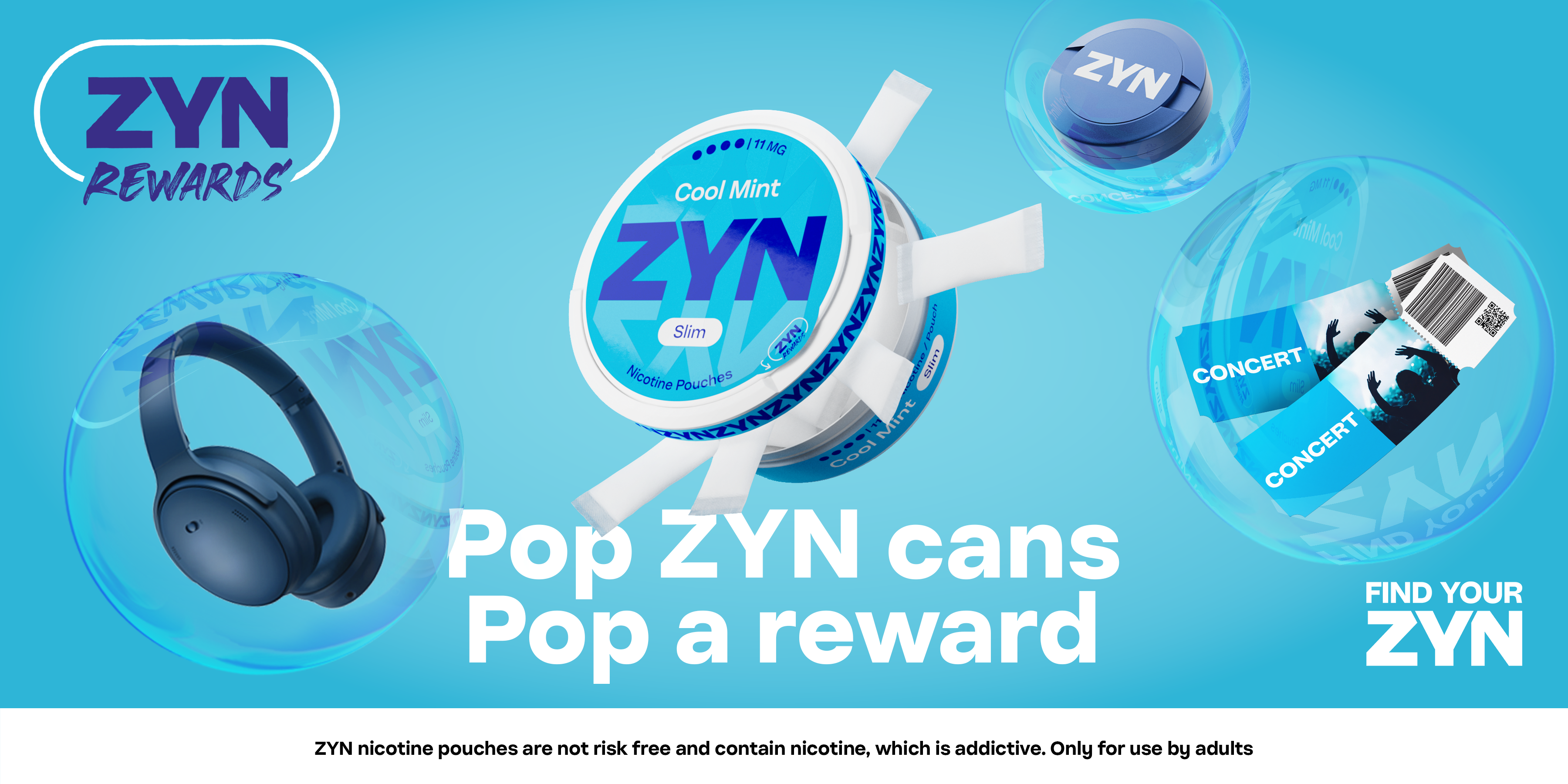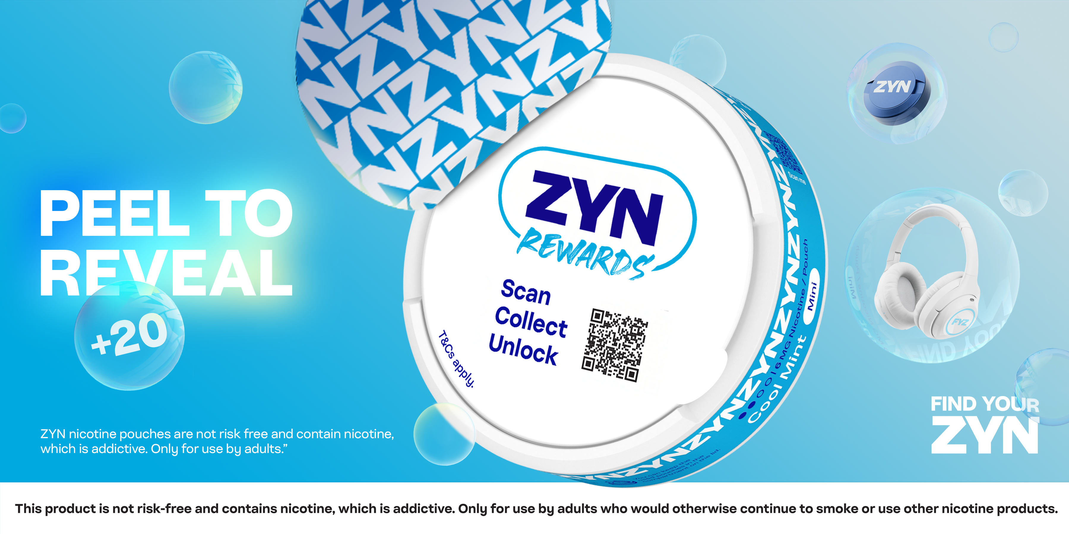 The core idea we developed connected familiar customer actions — popping the can, peeling the seal — with the visual metaphor of bubbles popping. This concept evoked lightness and a sense of ease, reflecting ZYN’s brand values, while visually revealing the rewards inside each bubble.