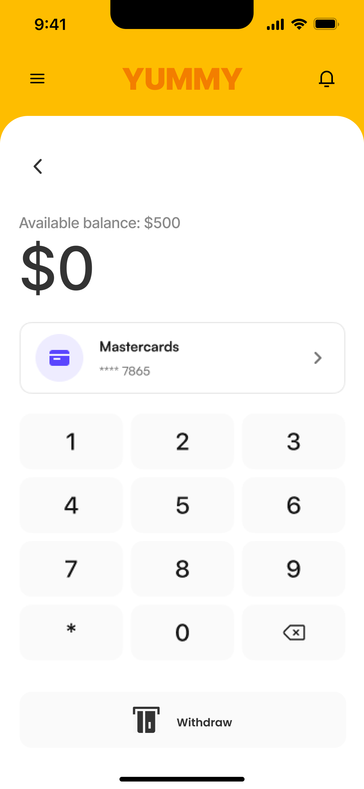 the cta "withdraw" become clickable (golden yellow) just after the user has selected the payment method and dediced the amount to withdraw.