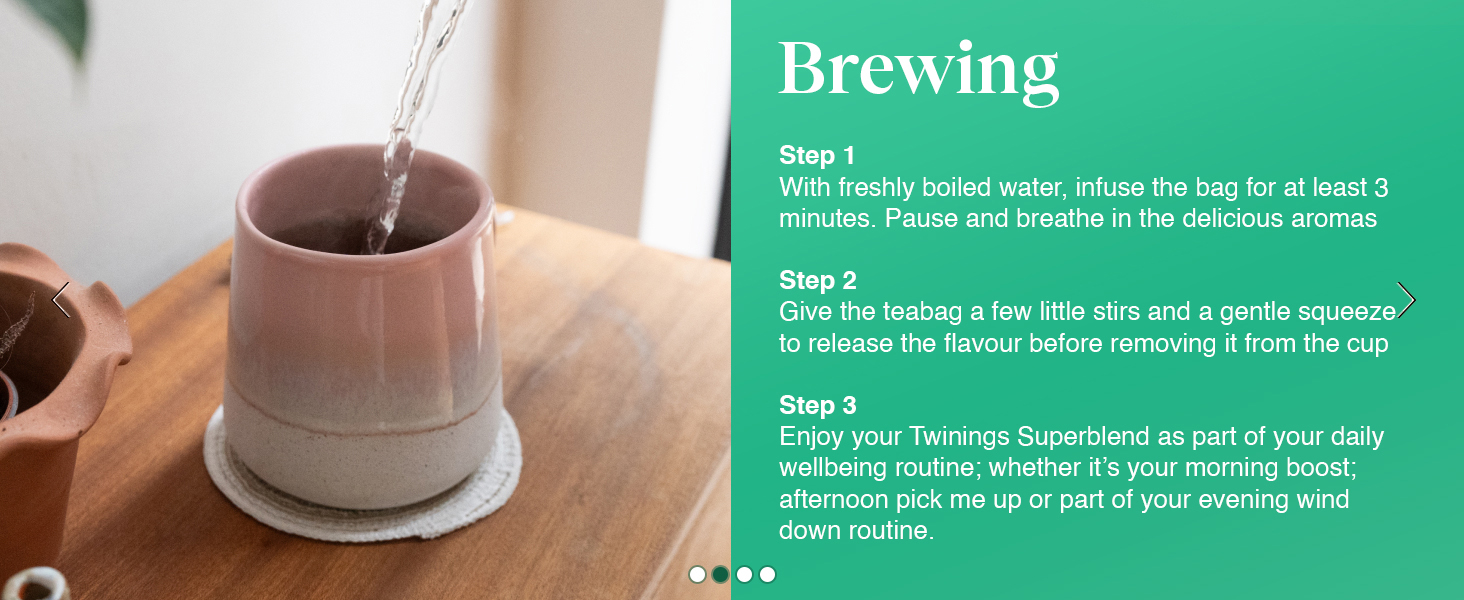 The brief required to keep the content of each design component as it was but refreshing each layout, updating it along the current Twinings design system.